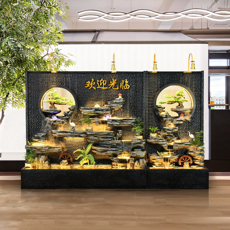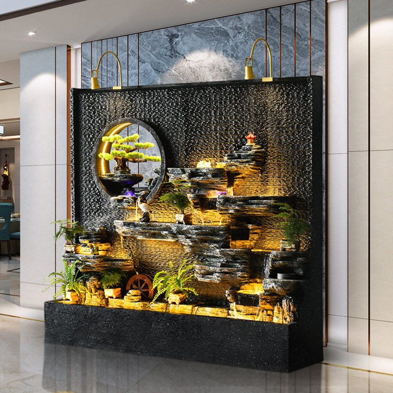 Rockery water fountain decoration water curtain wall porch screen restaurant hotel fortune outdoor feng shui wheel background decoration