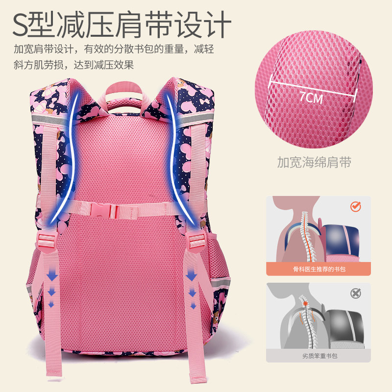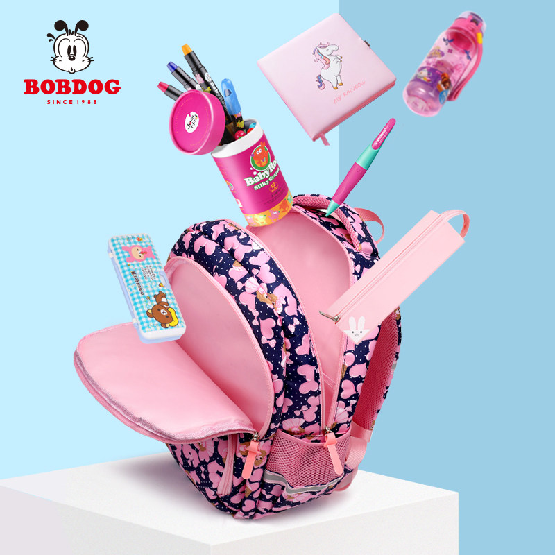 Babudou schoolbag female elementary school students children girls three to six grades backpack one or two crest protectors to reduce the burden ultra-light