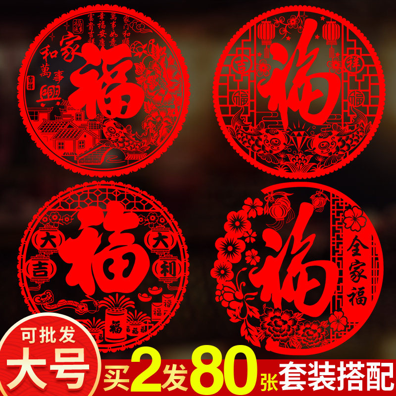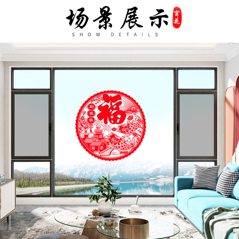 2022 New Year Window Sticker Tiger Year Window Flowers Fu Character Door Sticker Home Static Glass Sticker Wall Sticker Spring Festival decorations for Spring Festival