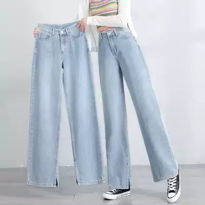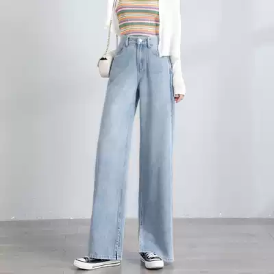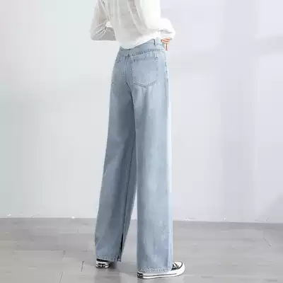 Split wide-legged jeans women's high waist slim 2021 spring dress new split slit drag floor pants vertical straight pants