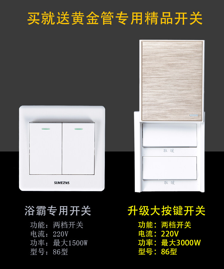 Integrated ceiling Yuba lamp 30×30 square ultra-thin gold tube Yuba carbon fiber light wave bathroom heater