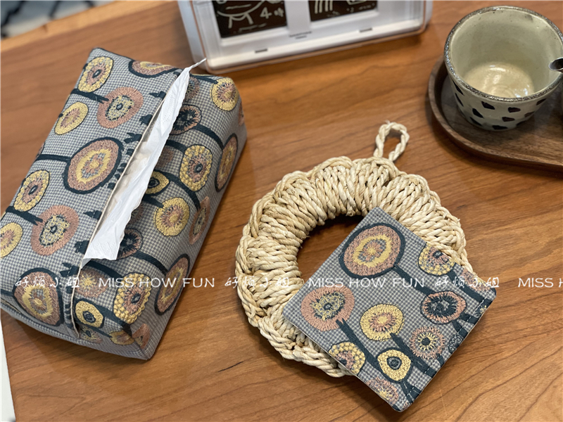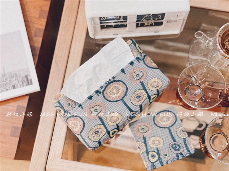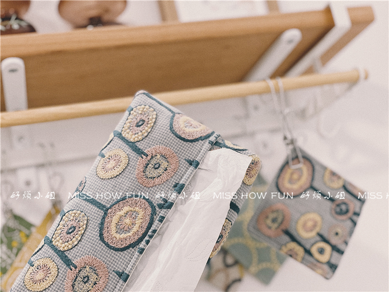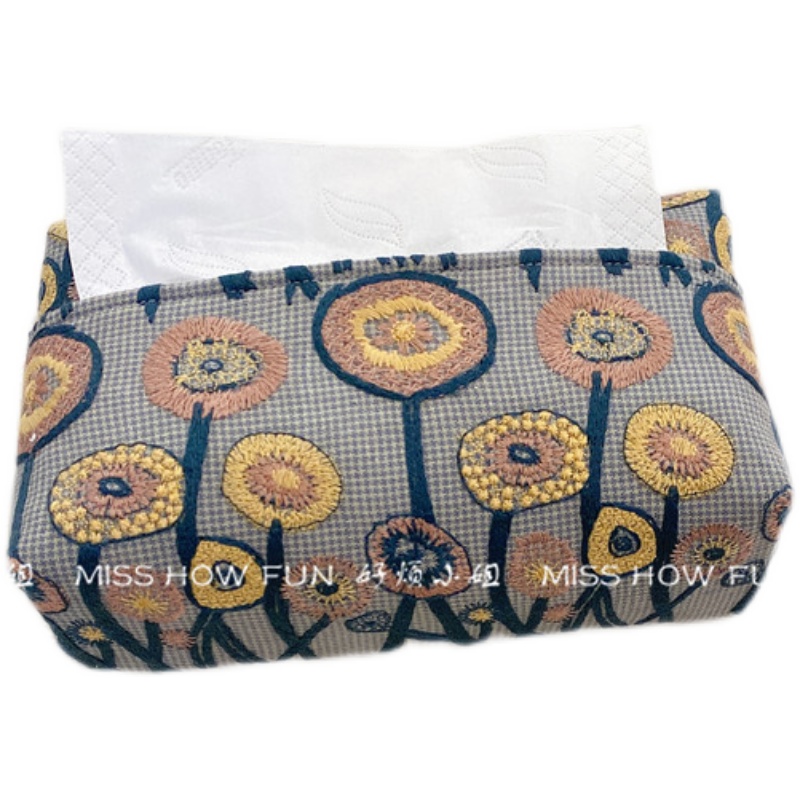 INS Nordic Japanese-style simple fabric non-Jaichuan Minghua Cong trail embroidery tissue bag set car storage retractable toilet paper bag