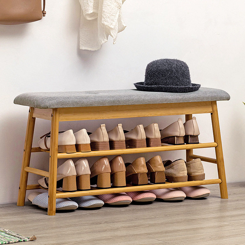 Changing shoes stool Domestic door Shoe stool Sitting Shoe Cabinet in door can sit solid wood integrated shoe rack wearing shoes stool soft bag
