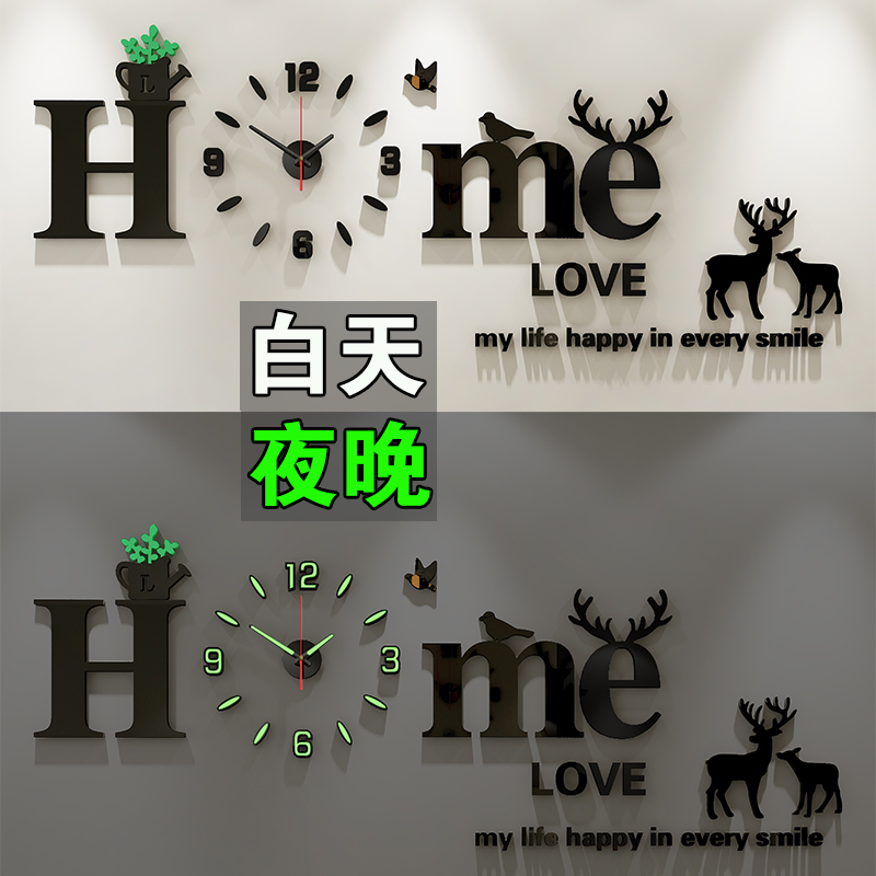 Silent watch hanging watch living room household modern simple creative clock art wall clock luminous free hole hanging wall
