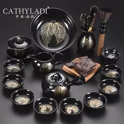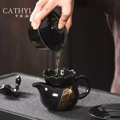 Cathyladi Jianzhan set home guests dark eyes set of golden wood Leaf Tea Teapot tea cup tea set gift