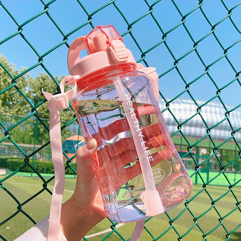 Water cup female large size with straw plastic cup portable outdoor sports high temperature resistant pot cup 2000ml