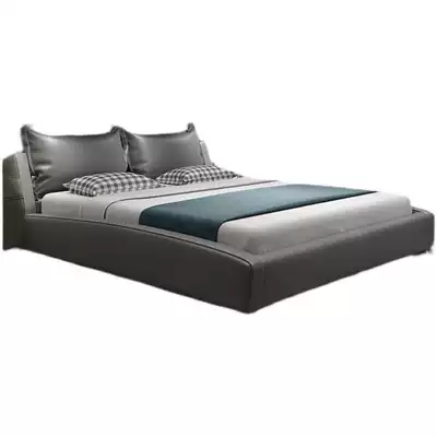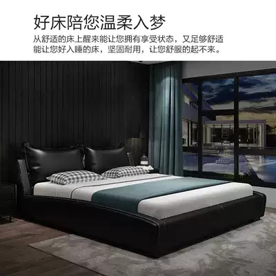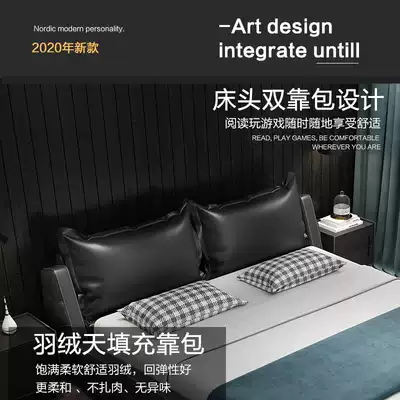 Leather bed real leather bed master bedroom simple modern light luxury ins Net red bed Nordic double bed 1 8 bedroom atmospheric wedding bed