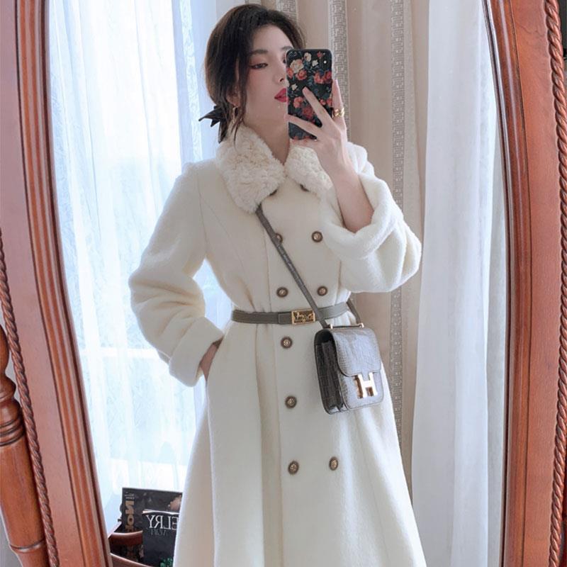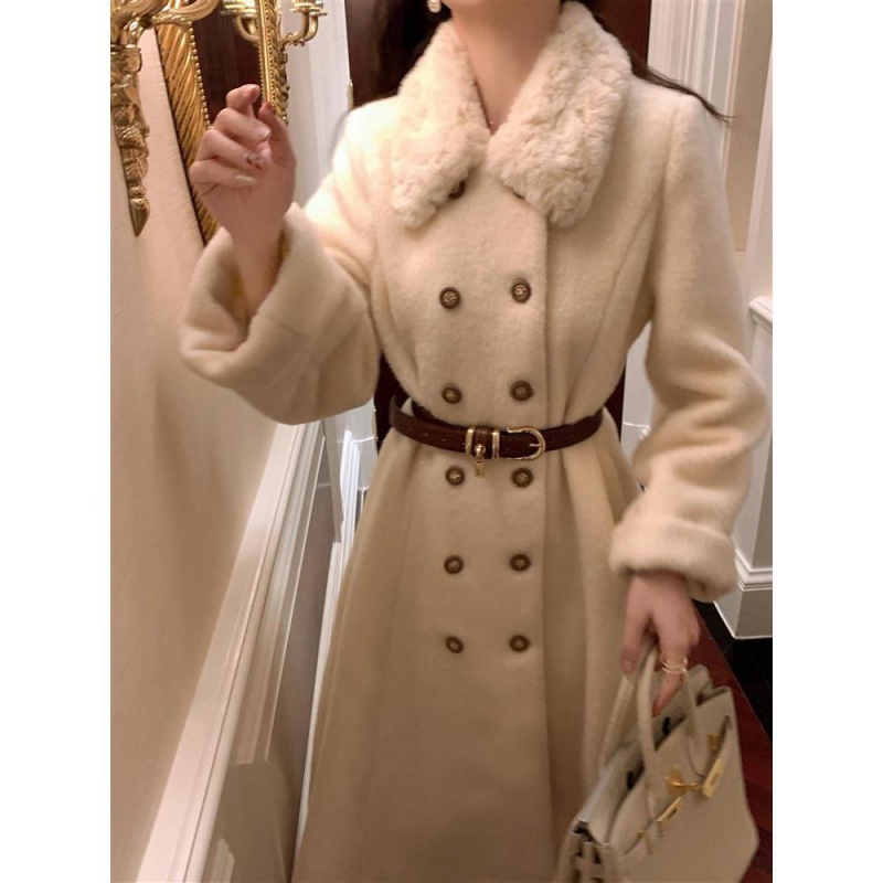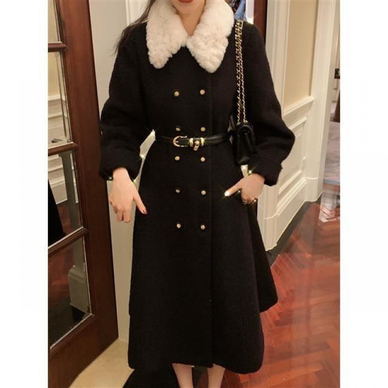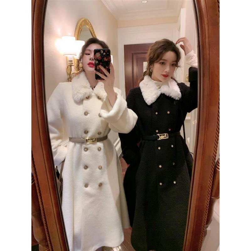 Woolen sweater women's coat fur collar lady grand lady 2020 autumn and winter new double row button small turnover for long version in the waist