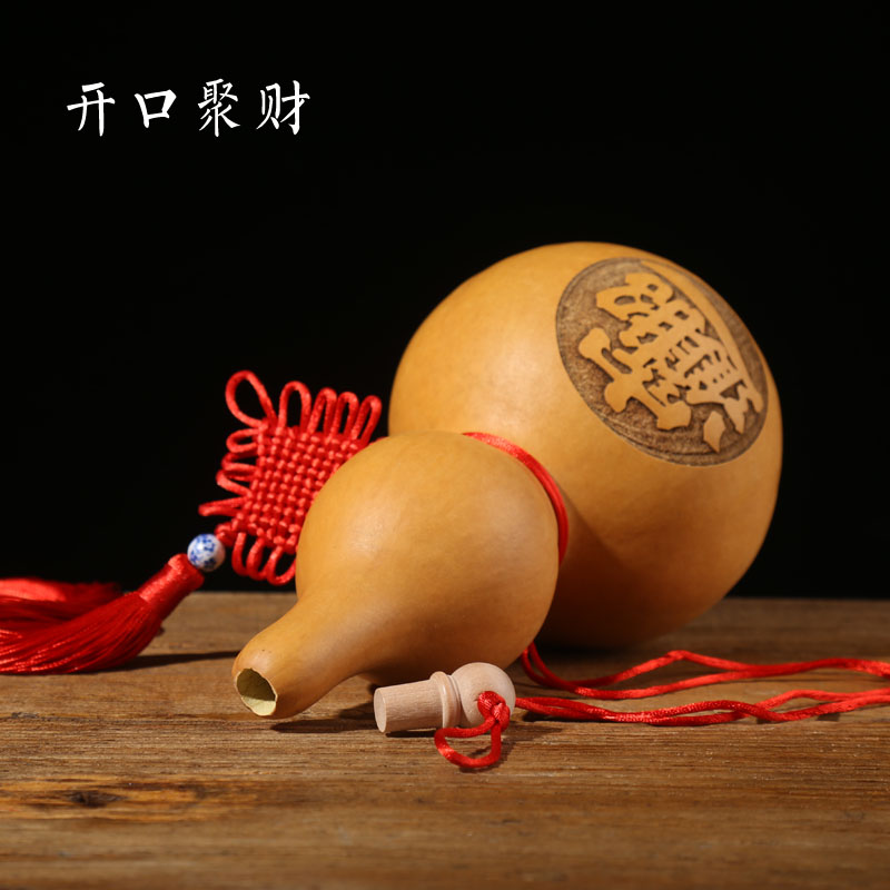 Natural open gourd hanging carving lucky treasure Home Feng Shui decoration Living room Store wealth position entrance housewarming
