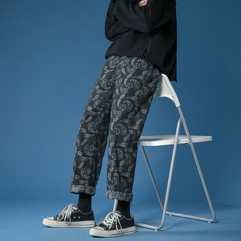 Cashew Nuts Flowers Jeans Male summer slim Tide Cards STRAIGHT DRUM LONG PANTS LOOSE TREND 100 LAP HIPHOP PANTS