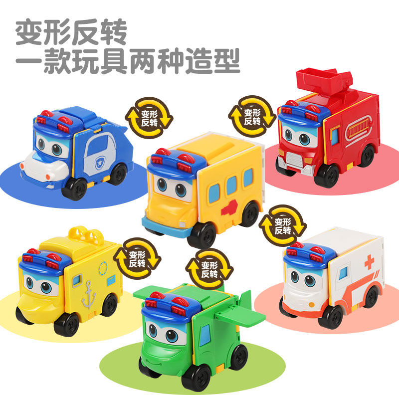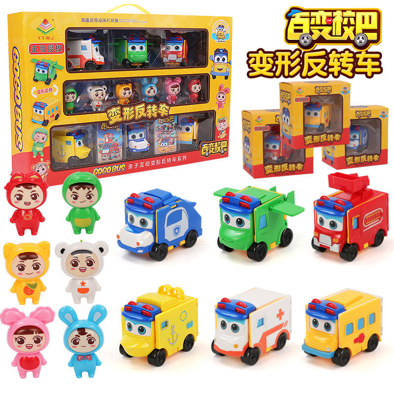 Variant school bus children's toys Goethe toy car Goth's full set of deformed reverse car genuine set double-sided car
