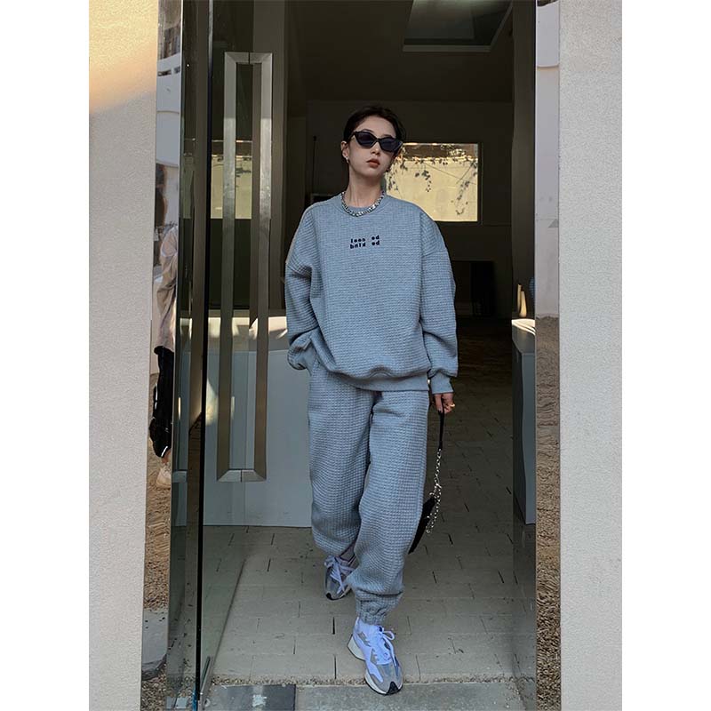 Cool salt system fried street wear 2022 fashion set foreign school net red temperament sports style casual thick cotton two-piece set women