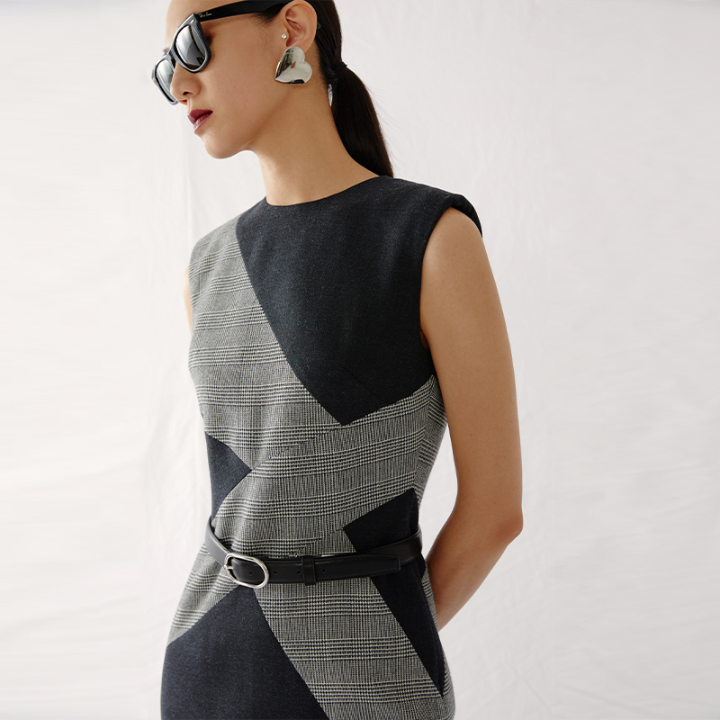 MADDEINAM 2021 NEW COTTON WOOL CLASSIC SMALL Thousand Birds Striped Design Gown Dress Dress Dress