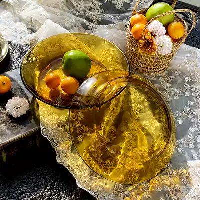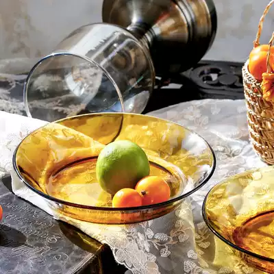 2 amber glass tableware tea colored plate home thick tea plate plate fruit plate