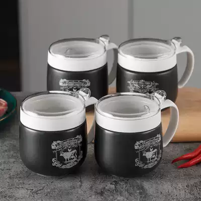 Kitchen seasoning tank Ceramic salt tank Household salt monosodium glutamate seasoning box combination set high-end jar