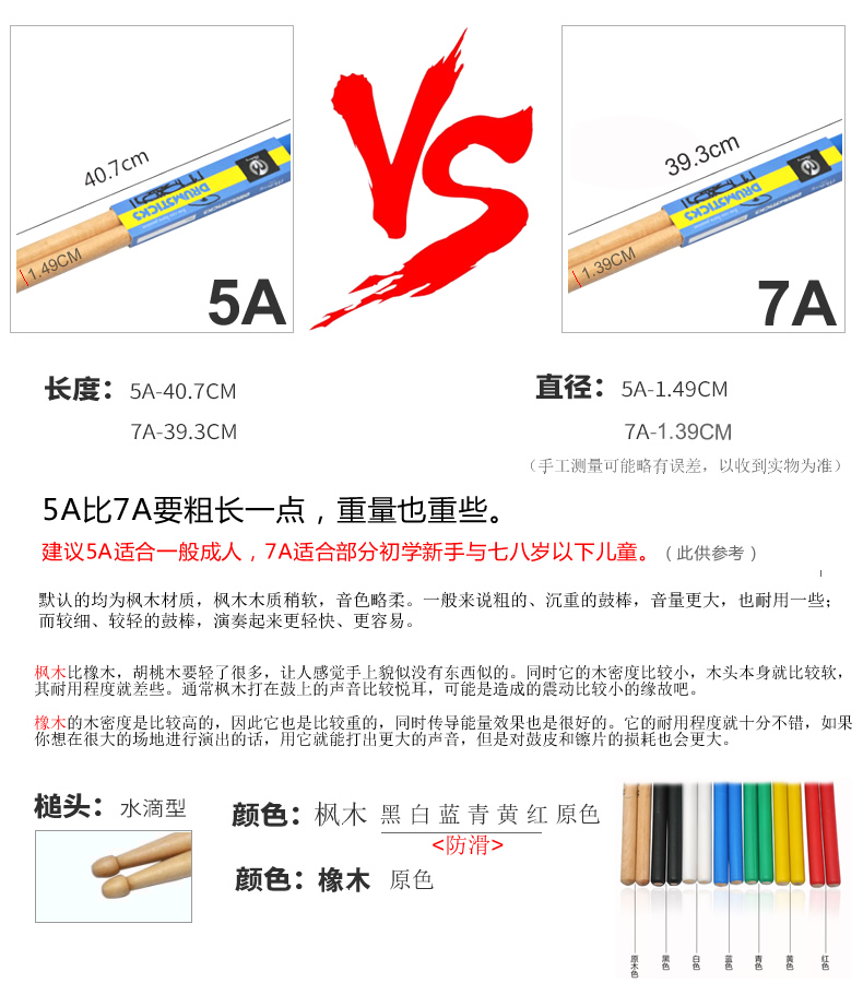 Set of maple wood non-slip drums Drum Jazz Drum Jazz Drum Hammer Drumstick Drumstick Children New Hands 7A Adult 5A
