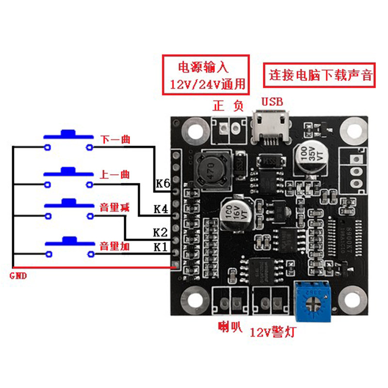 Voice Module Warning Light Playboard Electrifying Cycle Volume Adjustable 10W Power USB Custom 910DZ