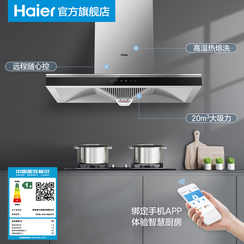 Haier Haier CXW-219-MA3T3 Top suction ventilator Home Kitchen Large Suction Oil Suction Machine