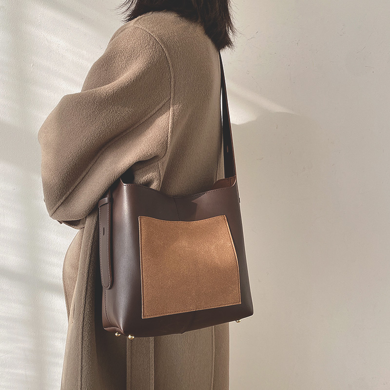 Large Capacity Retro Texture Bucket Bag Pack Woman 2021 New Korean version 100 Lapped Mother-daughter Bag Brief about single shoulder Inclined Satchel Bag
