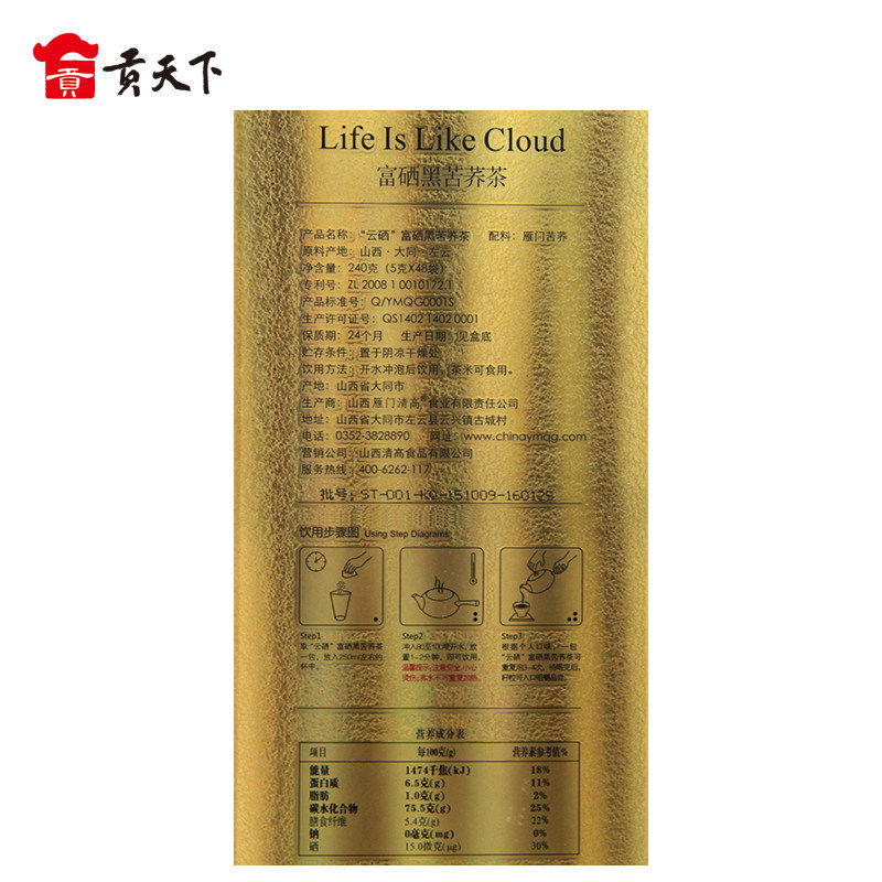 Yanmen Qinggao buckwheat tea cloud selenium black buckwheat tea gift box 240g*2 boxed selenium-enriched buckwheat tea whole germ tea