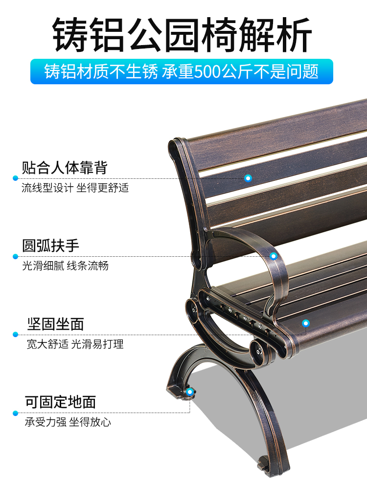 Outdoor park chair long chair courtyard wrought iron minimalist backrest balcony cast aluminum leisure bench outdoor long seat