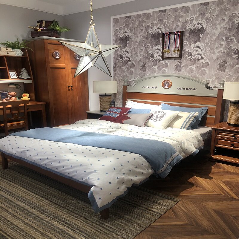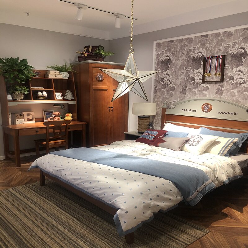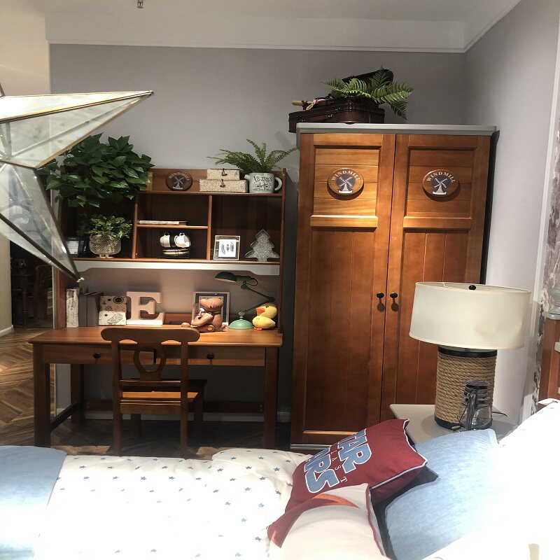 Noble popularity American simple style walnut durable look at the single bed + bedside table + desk + wardrobe combination