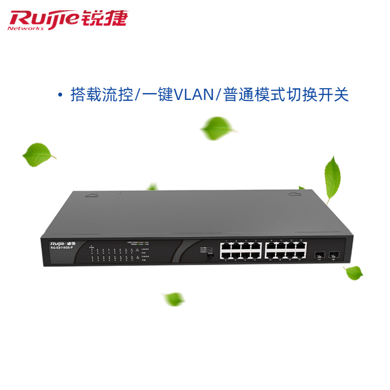 Ruijie RG-ES118GS-P 16 Gigabit POE Switch 2 Gigabit Optical Ports Plug and Go 247W