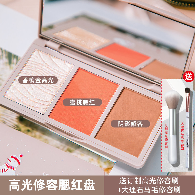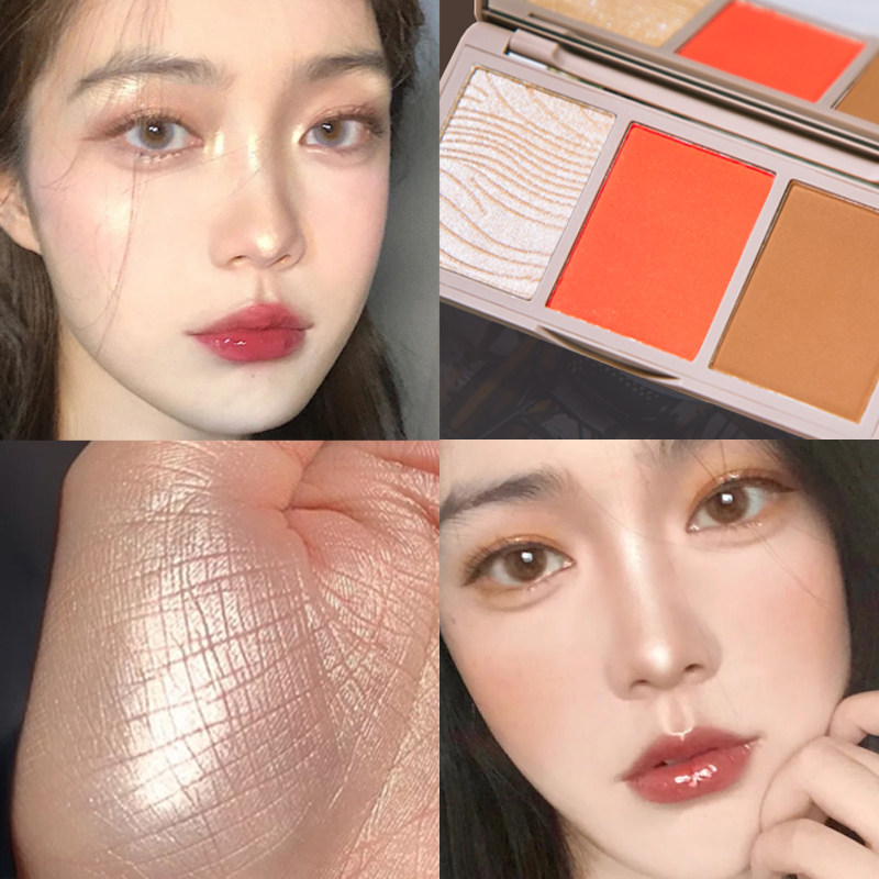 High light repair tray tricolour blush integrated matt shiny pink face Tired shadow snuff solid slim face three-in-one