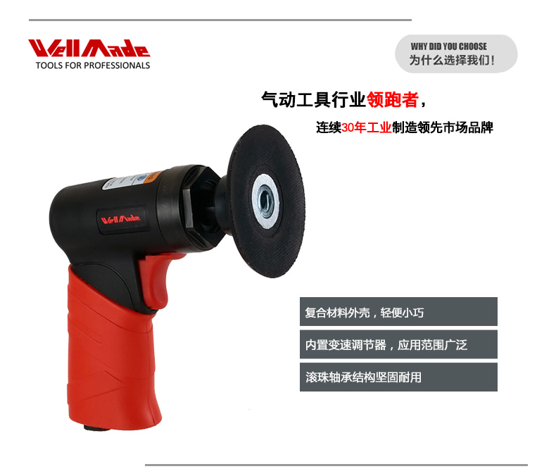 Taiwan Wilmette 3 inch 75mm Small Pneumatic Sander Grinding Machine Grinding Machine Tool WM-1111