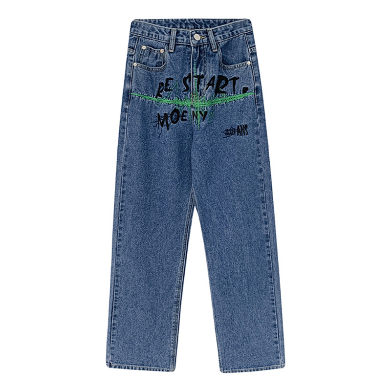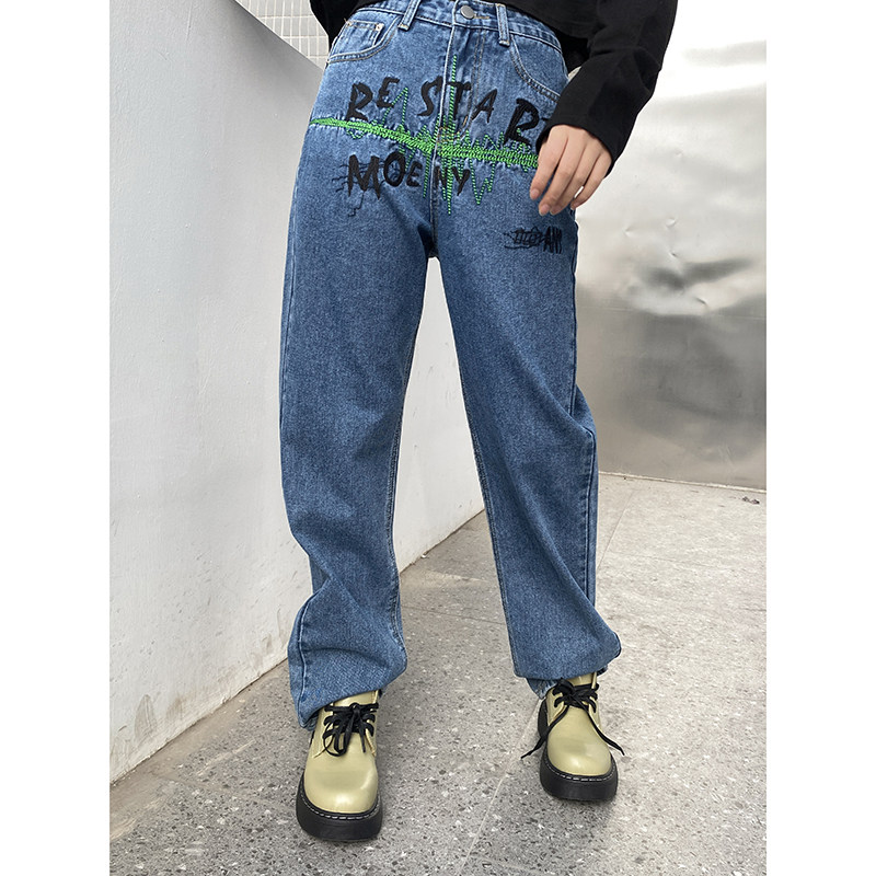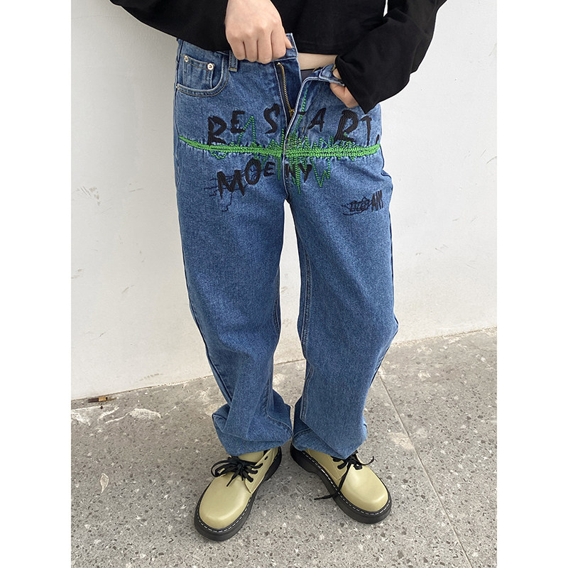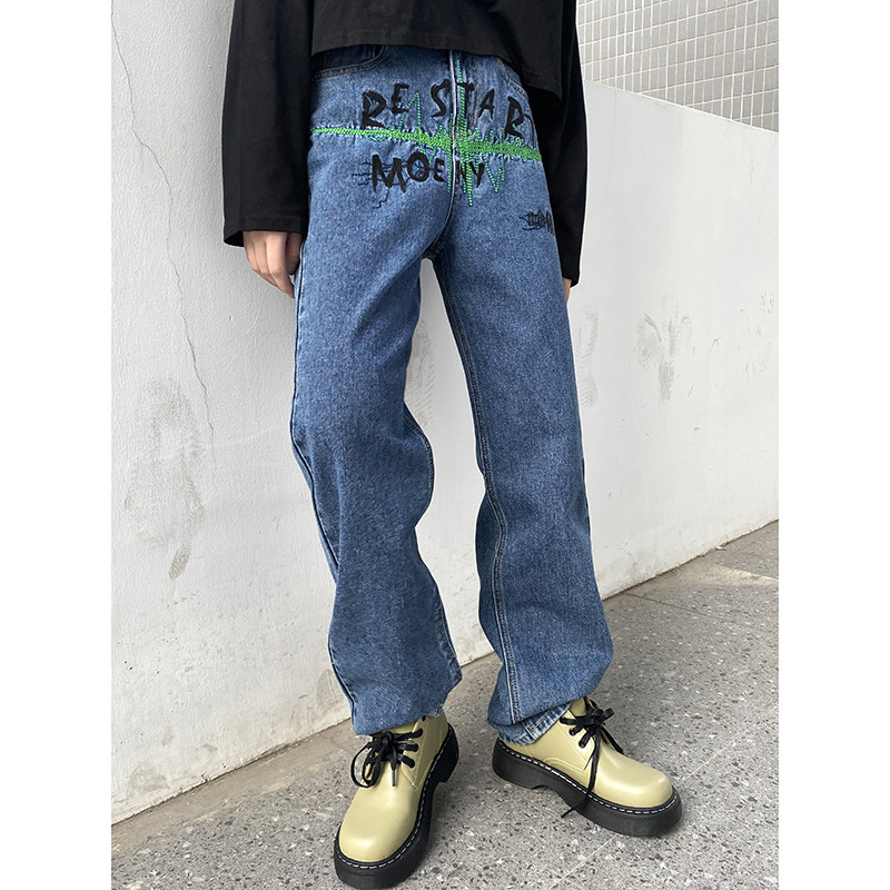 Race lazy design sense of public jeans women's summer thin high waist straight loose light European and American high street pants tide ins