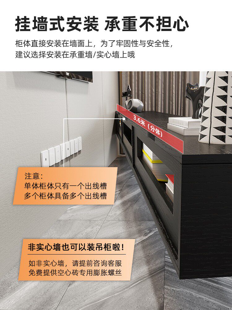 Extremely simple solid wood suspended TV cabinet Tea Table Combination Brief modern wall-mounted suspended hanging wall cabinet Living room Small family Type