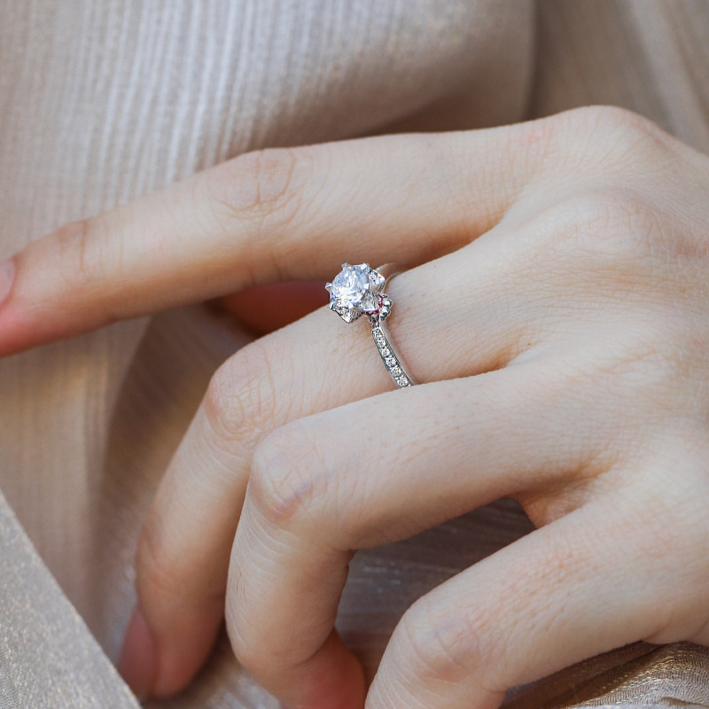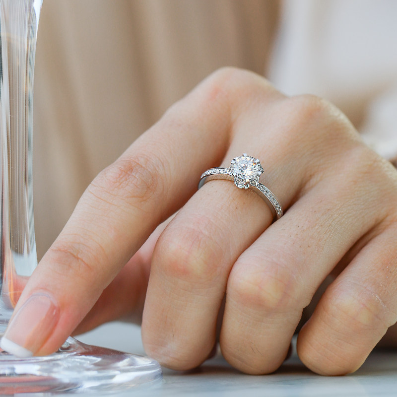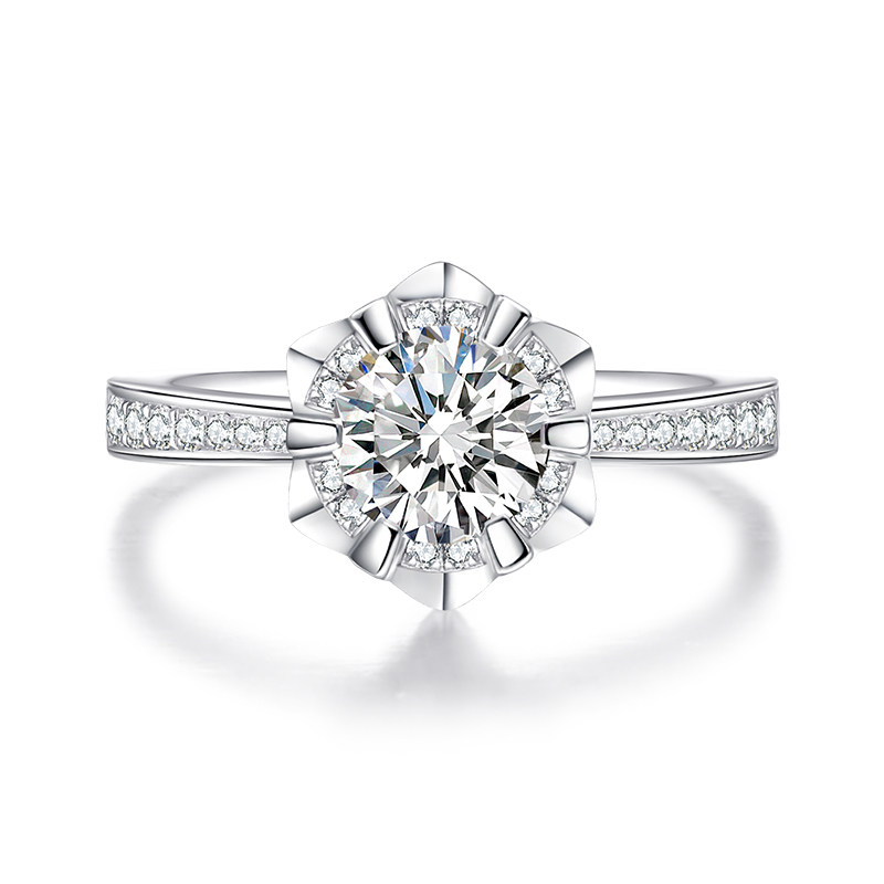 VENVOW Drilling Ring 18K Platinum Ring Female Classic Six Paws 1 Carat Diamond Courting Wedding Wedding Diamond Ring