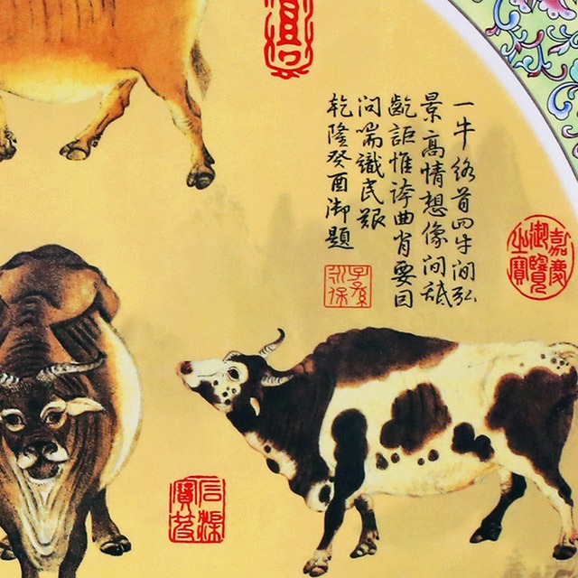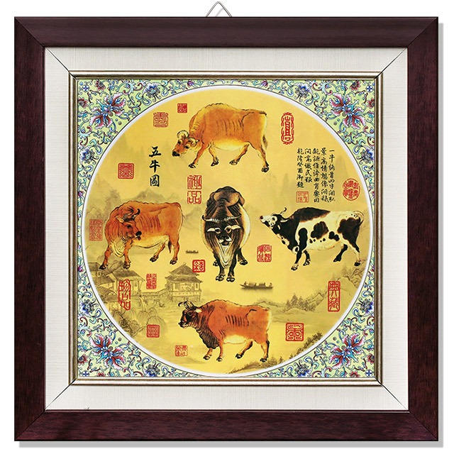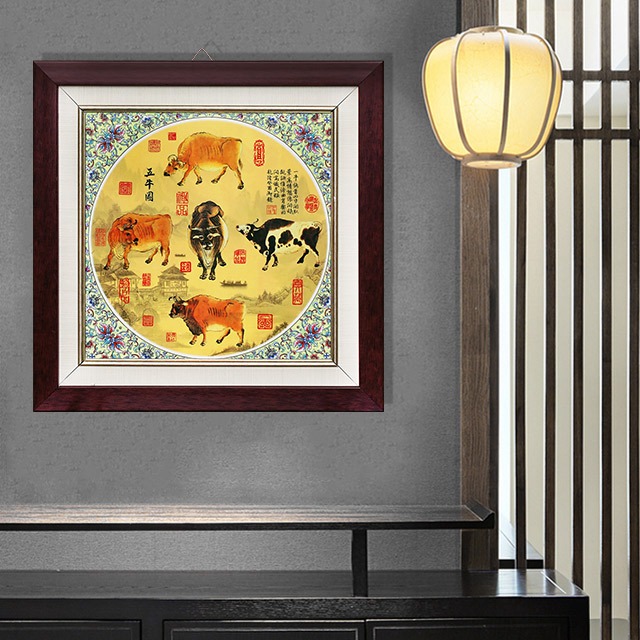 Condo Shengsheng porcelain all Jingdezhen Chinese-style porcelain plate painting Wufu Linmen Five Niu Tuxuan Sofa Background Wall Mural Painting