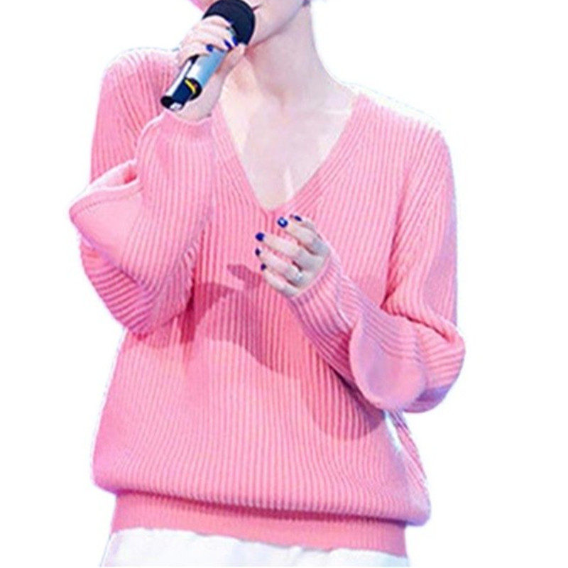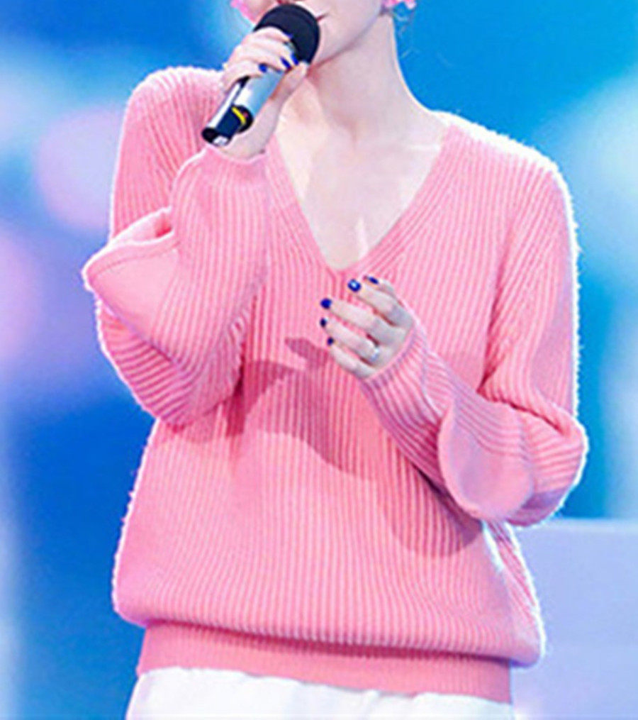 Star of the 2023 Spring New V lead port wind retro lazy wind sweater sleeve loose knitted tops