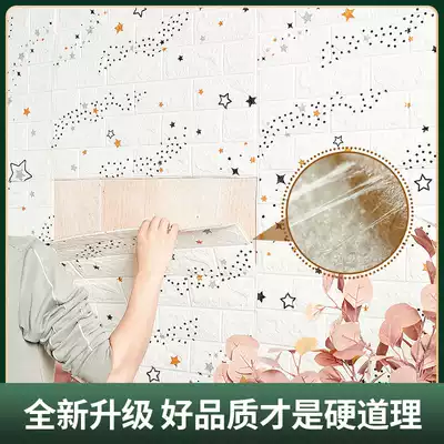 Wallpaper self-adhesive waterproof moisture-proof bedroom warm wall decoration wallpaper waterproof scrub 3d three-dimensional anti-collision wall stickers