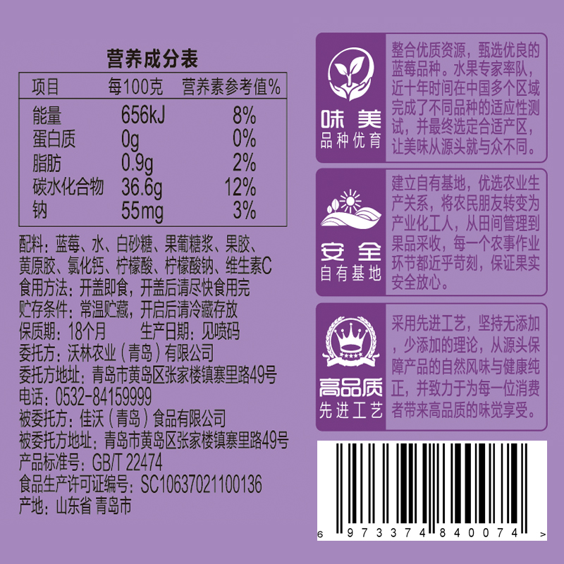 Blueberry Water White Granulated Sugar Fruit High Fructose Corn Gluon Calcium Chloride Citric Acid Sodium Citrate Vitamin C