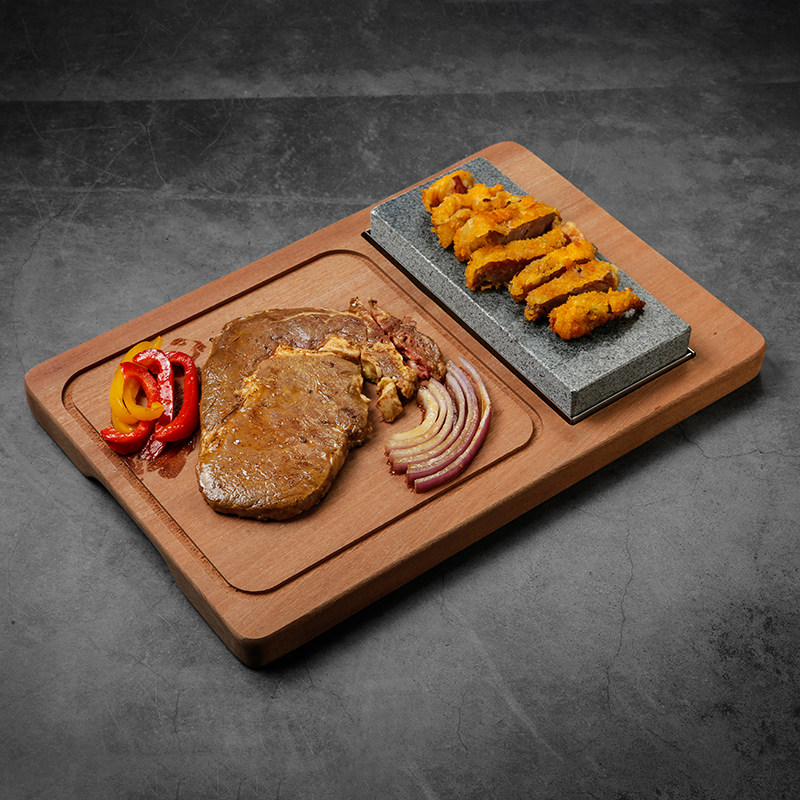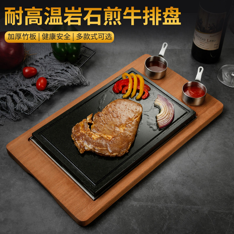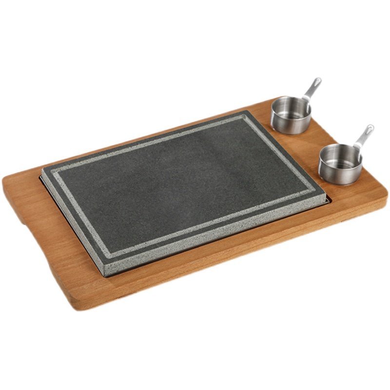 SandBilly Solid Wood Volcanic Rock Slate Steak Grilled Pan Western Dining Granite Plate Burning Bull Pickpocketing Korean Barbecue Hotel-Taobao