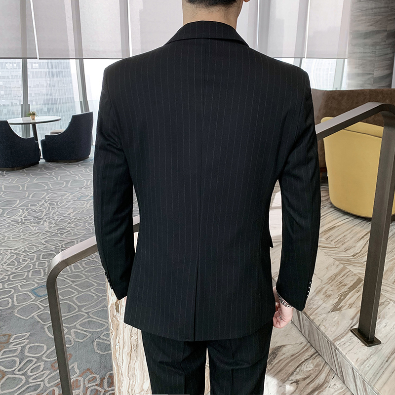 Men's suit slim Korean version striped groom wedding dress Casual business suit Formal three-piece suit tide