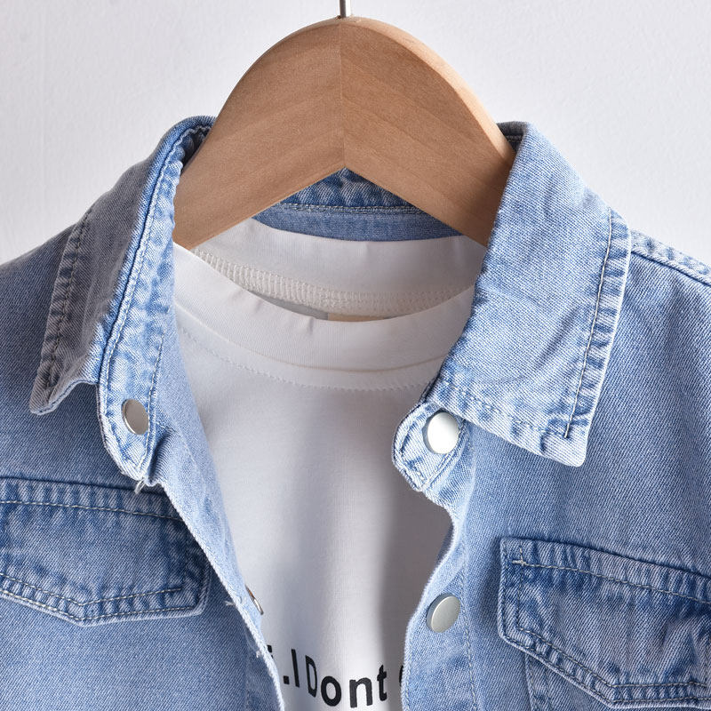 Soft ~ 2022 new spring clothes boy clothing boy jeans shirt child boomer Korean version baby lining coat thin coat