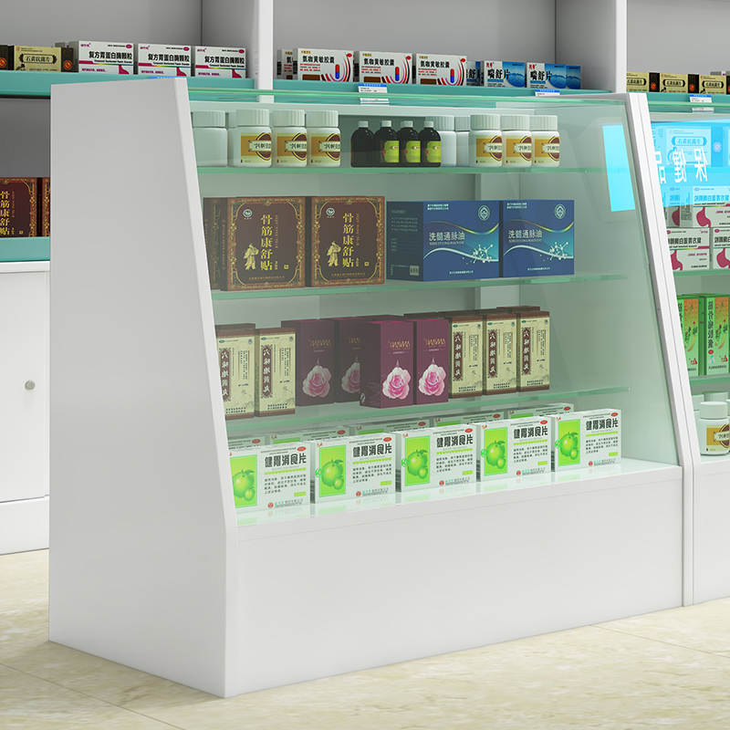 Drugstore shelf display stand wooden glass counter Western medicine cabinet clinic prescription cabinet pharmacy container Display Display Cabinet