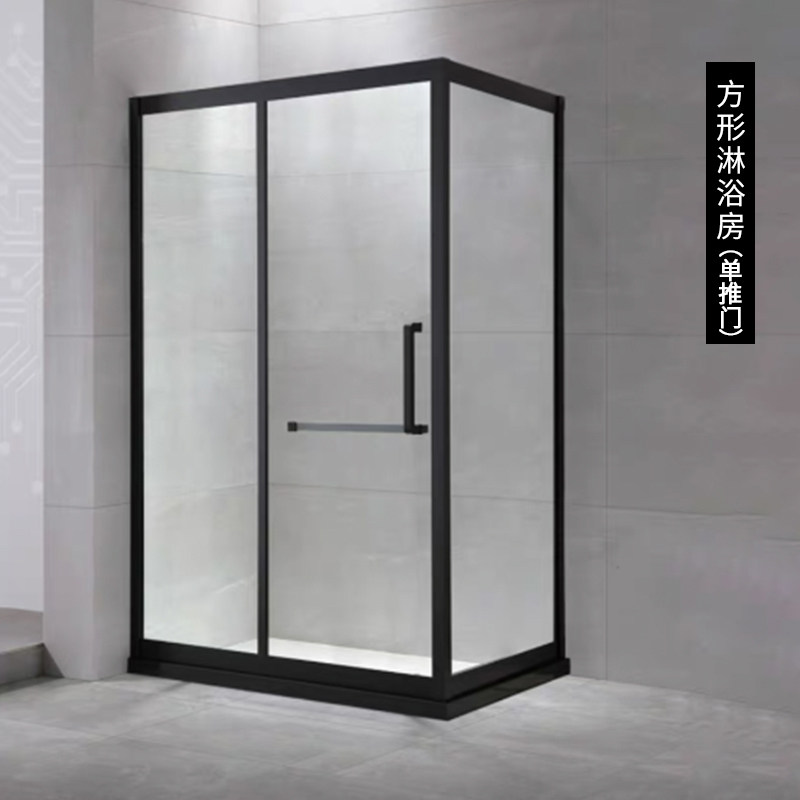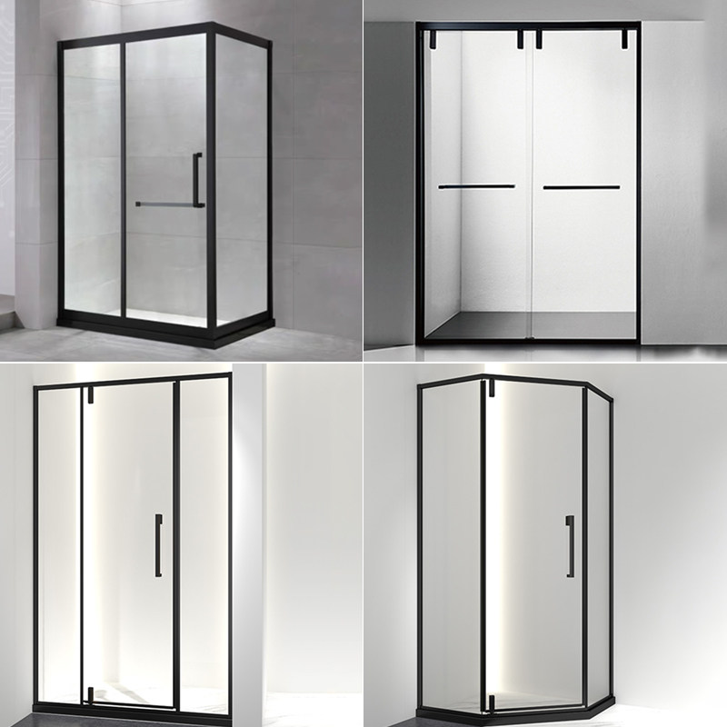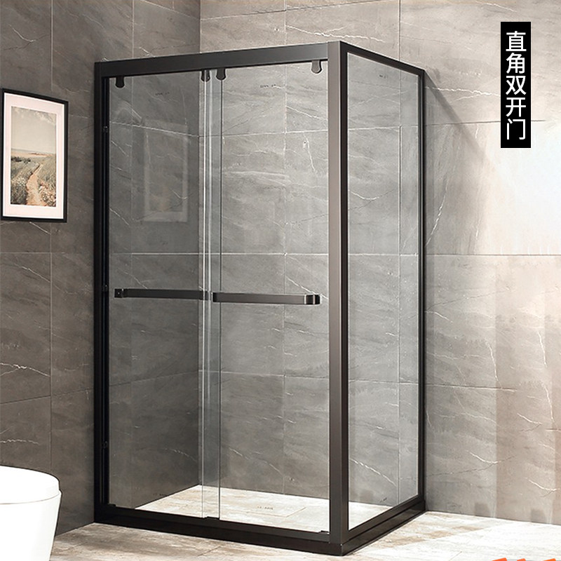 Customized black 304 stainless steel right angle shower room powder room dry and wet separation bath screen tempered glass sliding door