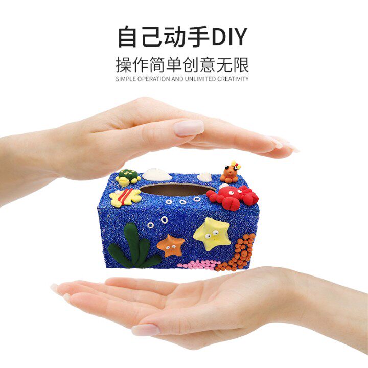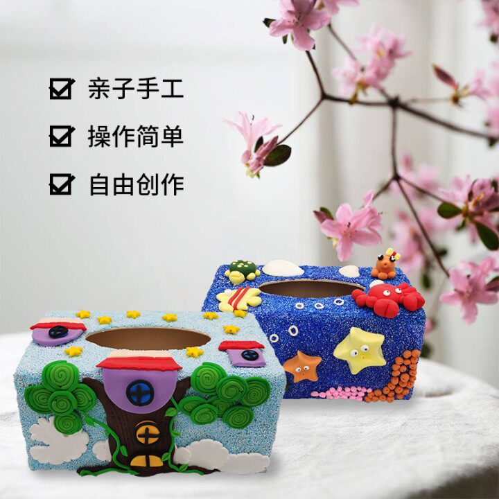 National Day children's handmade diy snowflake mud extractable tissue paper box creative clay parent-child paste making material package