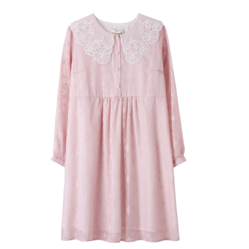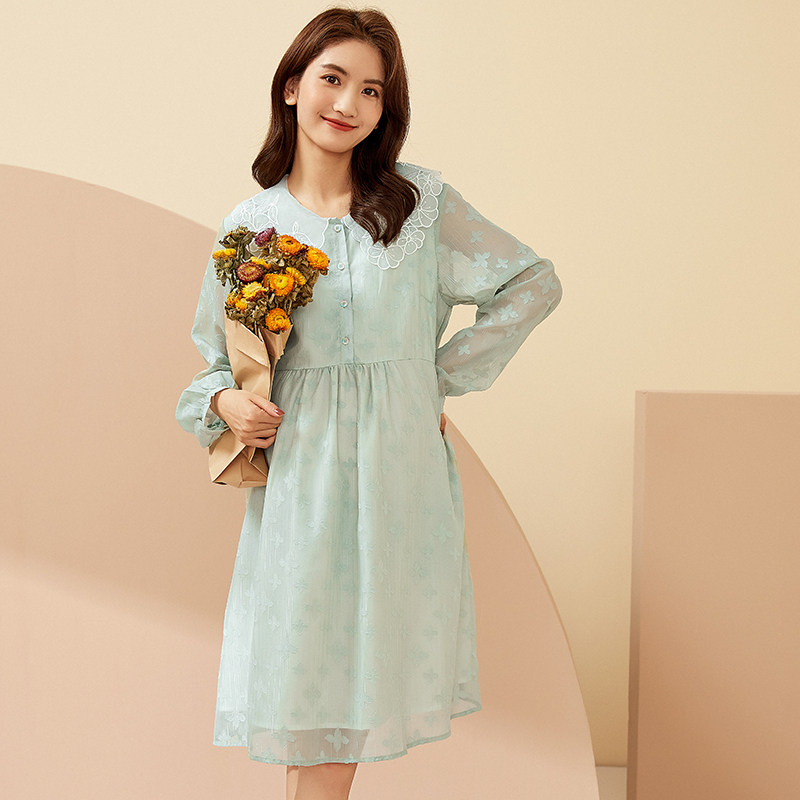 (door flap-laced breast-feeding) Pregnant Pregnant Woman Dress Spring Summer New Jacquard Snowspun Laced Long Sleeve Foreign Dress