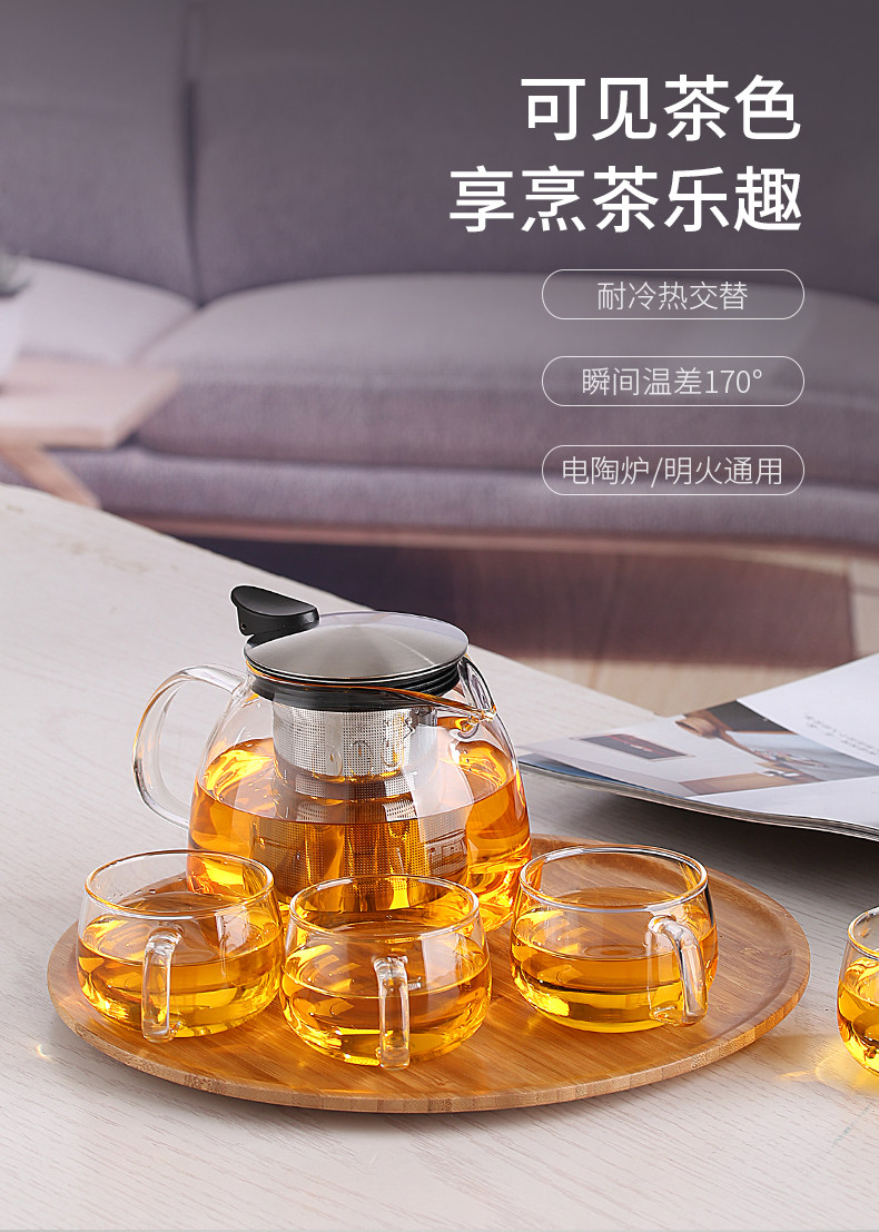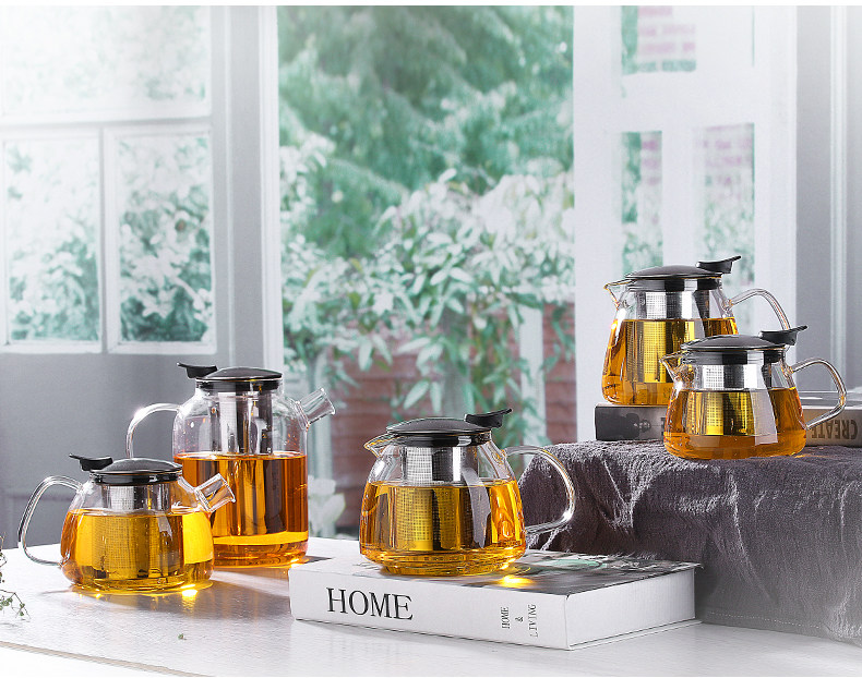 Peking University history glass large capacity bubble teapot Chinese flower teapot thickened stainless steel filter high temperature resistant domestic tea set