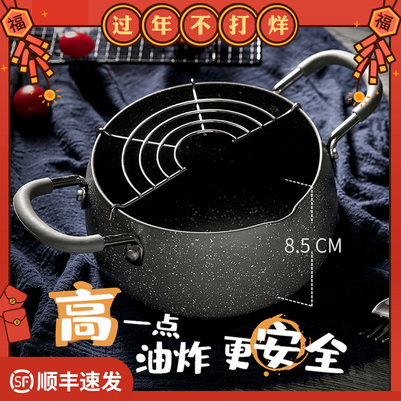Tempura fryer Home small mini oil saving deep type fryer Japanese small splash proof oil special frying pan