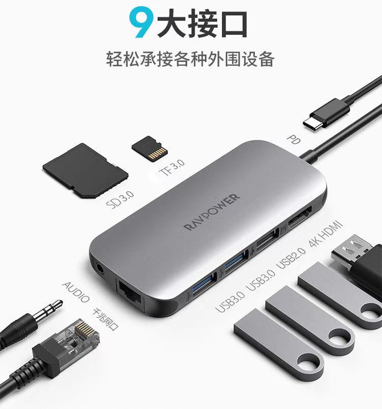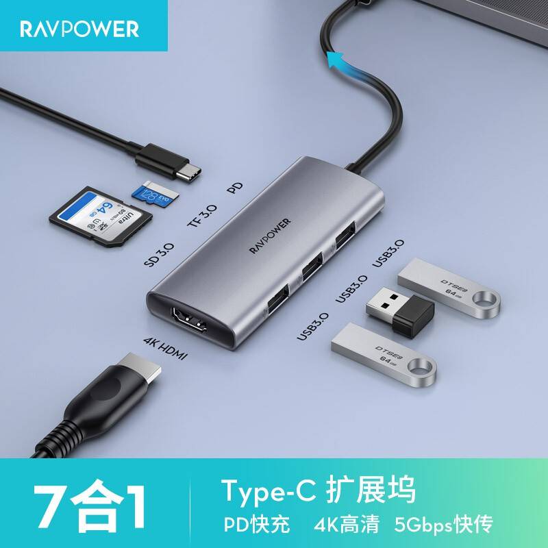RAVPOWER expands dock Type-c turns hdmi card reader HUB to apply the iPad Huawei MacBookPro