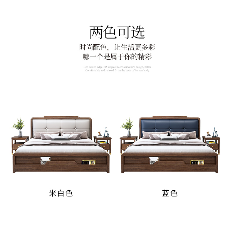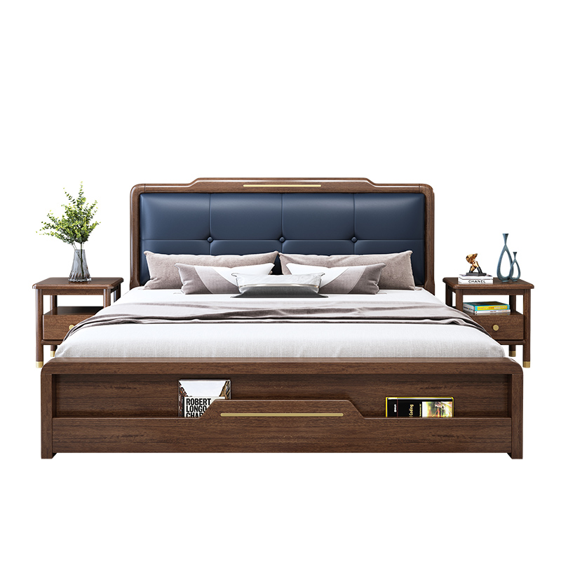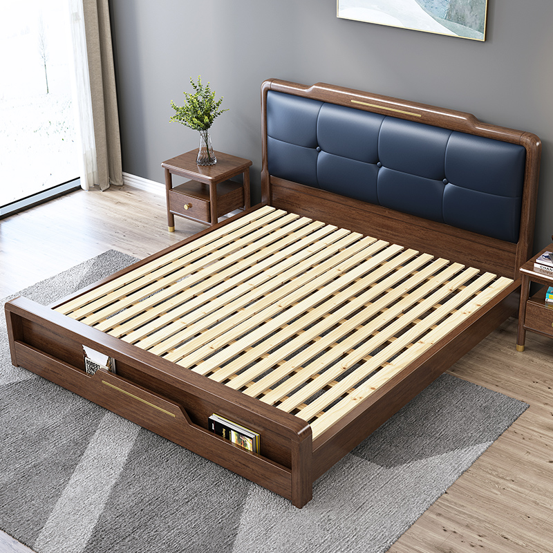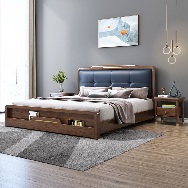 Nordic solid wood bed walnut new Chinese style 1 8 meters double bed simple modern bedroom 1 5 soft bag storage wedding bed