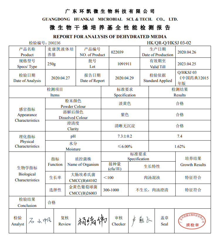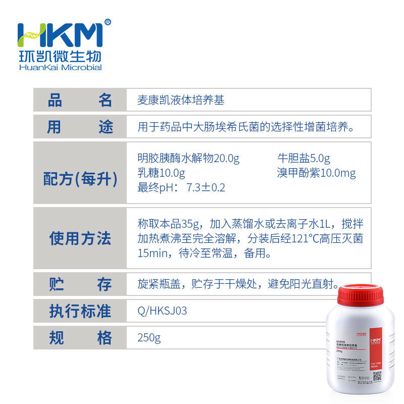 MacConkey liquid medium 15th edition Pharmacopoeia 250g Huankai 022039 Escherichia coli enrichment culture