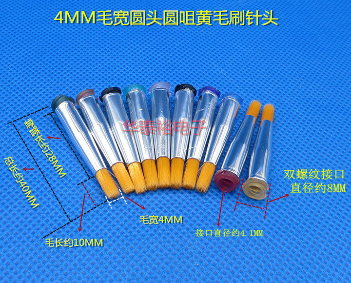 14G round head hair width 4MM yellow hair brush 15G round head hair width 4MM yellow hair brush 16G round head hair width 4MM yellow hair brush 18G round head hair width 4MM yellow hair brush 19G round head hair width 4