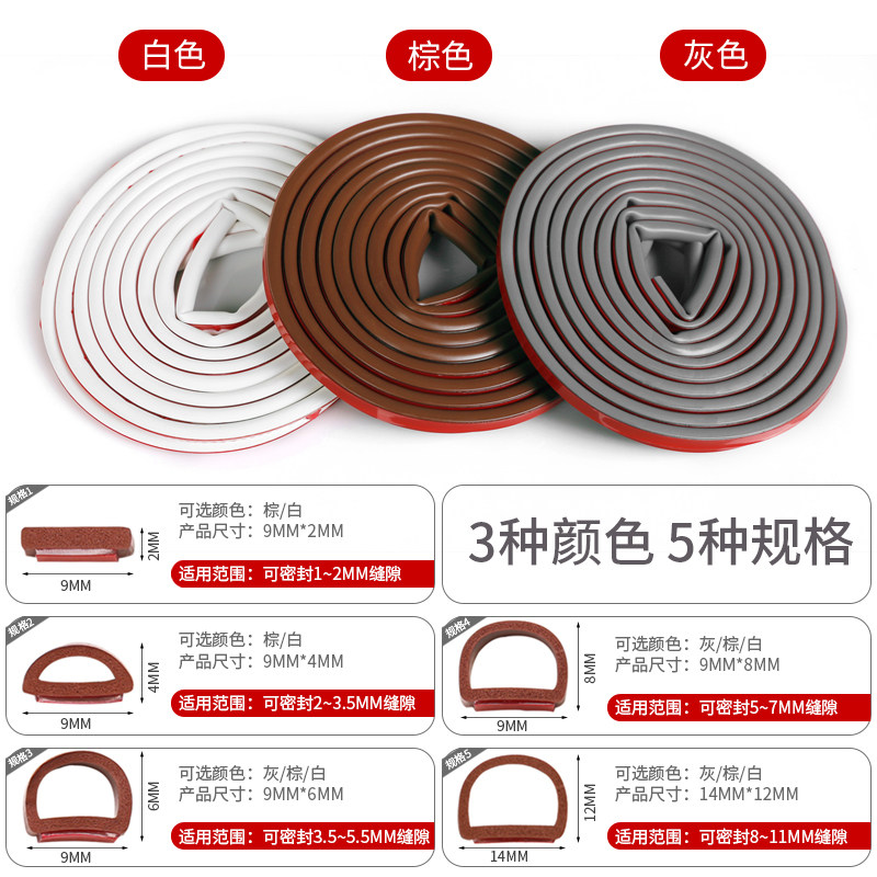 Door seam sealing strip Window sound insulation door frame anti-collision Door and window gap is pasted from the adhesive windproof rubber strip anti-theft door seal